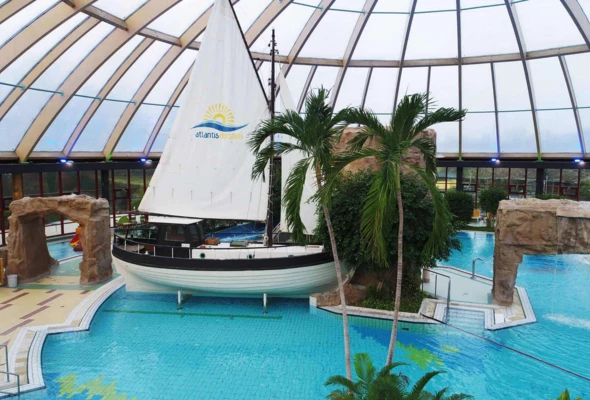The “Atlantis” complex in Dorsten was designed as a themed leisure destination inspired by the idea of a tropical island, where architecture, interior design and functional programme come together to create a cohesive and immersive user experience. The central feature of the development is the main pool hall, covered with a lightweight ETFE membrane roof structure that allows natural daylight to flood the space while giving the building its distinctive and recognisable form.