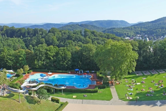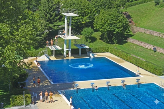 The completed “Hardbergbad” facility in Baden-Baden is a compact sports and leisure complex that seamlessly combines swimming and recreational functions within a green park setting. The development includes a lap pool, a leisure pool, and a dedicated diving area, complemented by technical facilities and changing areas. The overall concept is based on a clear, functional layout and a sensitive integration into the existing landscape.