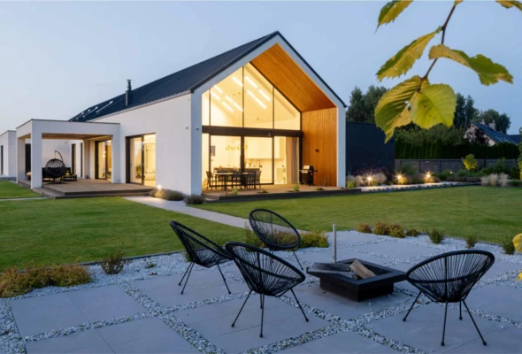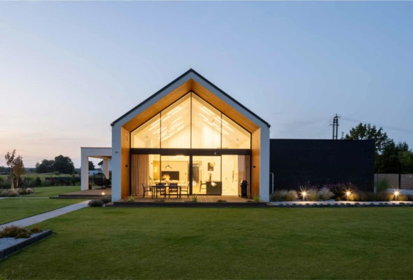 Modern Barn House Katowice is a single family house designed as a contemporary interpretation of the archetypal pitched roof form. The building combines a restrained, legible composition with openness to light, the garden and everyday comfort. Its minimalist form, natural materials and carefully balanced proportions create an architecture that feels calm, elegant and timeless. This is a house in which modernity does not result from expressive formal gestures, but from precision, proportion and a thoughtful relationship between interior, form and surroundings.