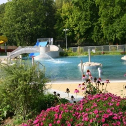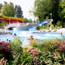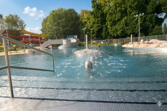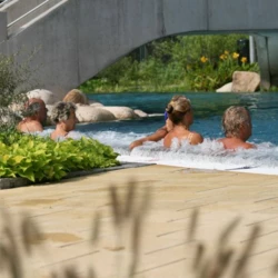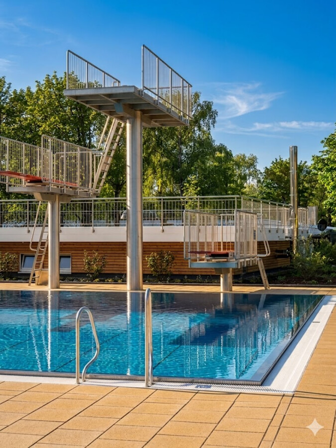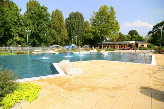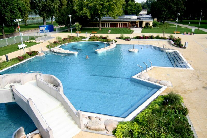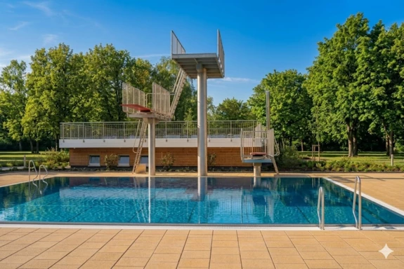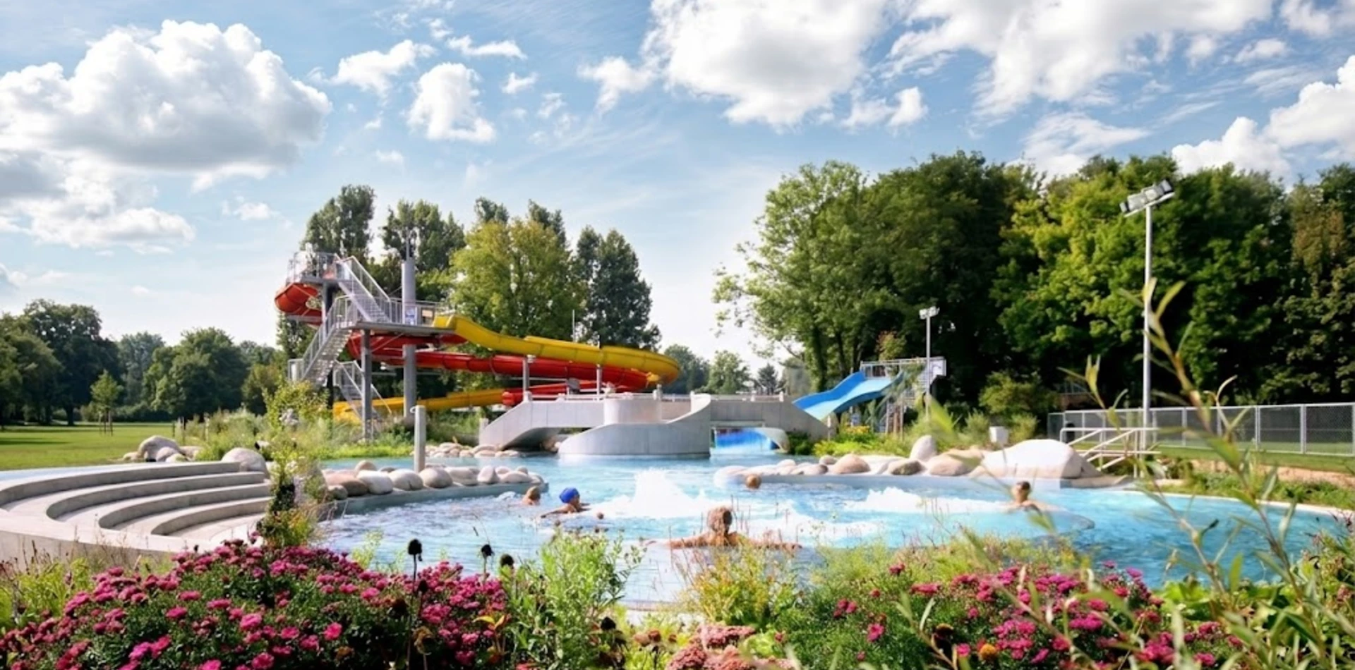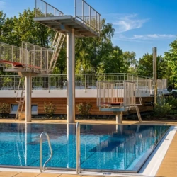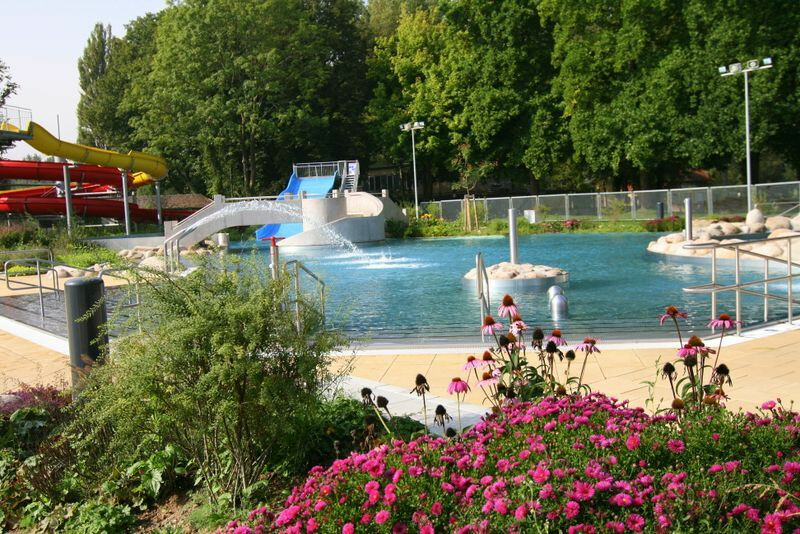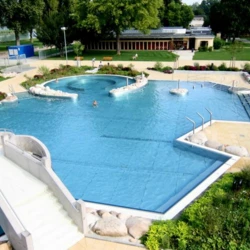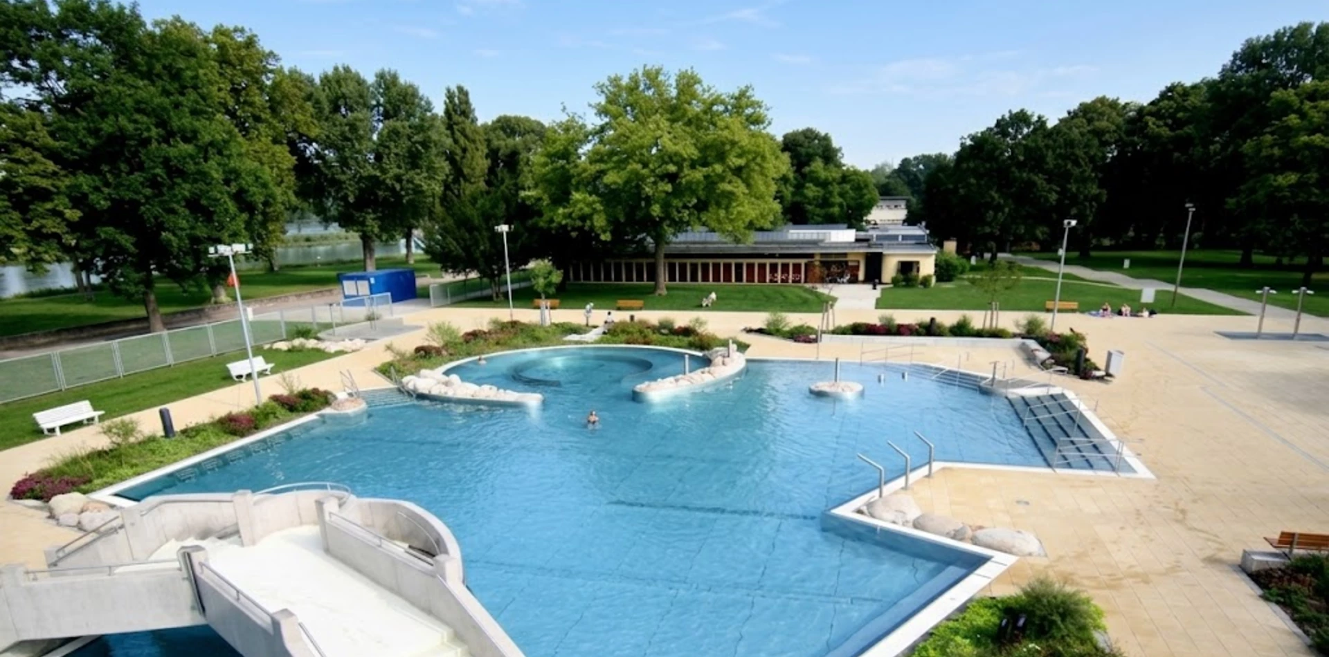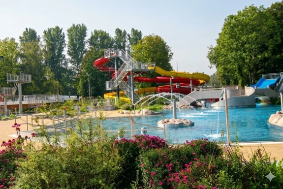 The completed “Rappenwörtbad” bathing complex in Karlsruhe is a modern recreational facility with a strong family-oriented character, combining a variety of water-based functions within a natural riverside setting. The project includes an extensive zone of leisure pools, water slides, and relaxation areas, creating an attractive environment for users of all ages. A key aspect of the concept is its landscape-driven design, with pool basins and terrain shaped to reflect natural water forms.