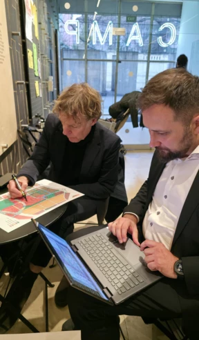 Jednym z elementów trwającej współpracy nad projektem Future Park w Rzeszowie było spotkanie robocze, które odbyło się w Pradze w CAMP – Centrum Architektury i Planowania Miejskiego, przy okazji wykładu Winy Maas poświęconego przyszłości miast. Spotkanie stanowiło przestrzeń do omówienia kolejnych etapów prac oraz doprecyzowania kluczowych założeń masterplanu nowej dzielnicy. Był to ważny krok w międzynarodowej współpracy z zespołem MVRDV, wpisujący się w długofalowy proces wspólnego rozwijania spójnej, zrównoważonej wizji Future Parku jako projektu miasta przyszłości.