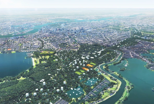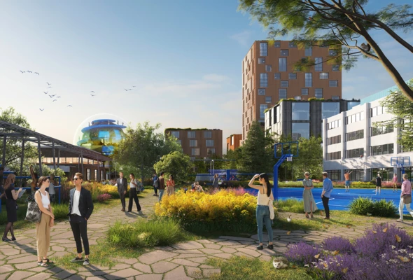 We współpracy z MVRDV powstaje projekt Future Park, dzielnica miejska w Rzeszowie, zaprojektowana jako jedna z najbardziej zaawansowanych i zrównoważonych części miasta. Założenie będzie łączyć park rozrywki, rozległe tereny zielone oraz rozwiązania urbanistyczne inspirowane Singapurem, realizując jednocześnie zasady miasta 15-minutowego i koncepcję miasta-ogrodu. Kierując się ambicją tworzenia projektów światowej klasy, do współtworzenia tej wizji zaprosiliśmy MVRDV pod kierownictwem Winniego Maasa, aby wnieść globalne doświadczenie i odważne idee do kluczowego projektu urbanistycznego regionu. Wspólnie kształtujemy przyszłość Rzeszowa i szybko zmieniającej się Polski, a w sercu inwestycji znajduje się SOL@RES, centrum sportów wodnych projektowane przez TKHolding, będące symbolicznym i funkcjonalnym punktem orientacyjnym całej dzielnicy.