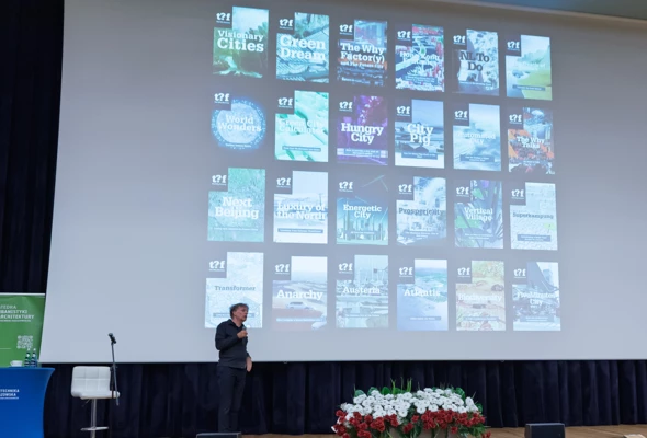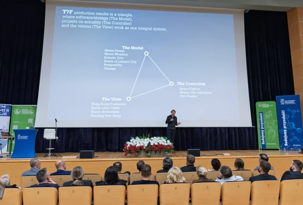 Jednym z ważnych etapów współpracy nad Future Park w Rzeszowie było otwarte spotkanie z mieszkańcami, którego centralnym punktem był wykład Winy’ego Maasa, współzałożyciela MVRDV. Wypełniona po brzegi aula Politechniki potwierdziła, jak duże jest zainteresowanie kierunkiem rozwoju miasta i skalą planowanych zmian, a także jak istotna jest potrzeba rozmowy o przyszłości Rzeszowa w szerokim, międzynarodowym kontekście. Spotkanie stało się przestrzenią do dzielenia się inspiracjami, zadawania pytań i budowania wspólnego zrozumienia dla idei, które stoją za projektem nowej dzielnicy, w tym dla rozwiązań z zakresu zrównoważonego planowania, zielonej infrastruktury i jakości przestrzeni publicznych.